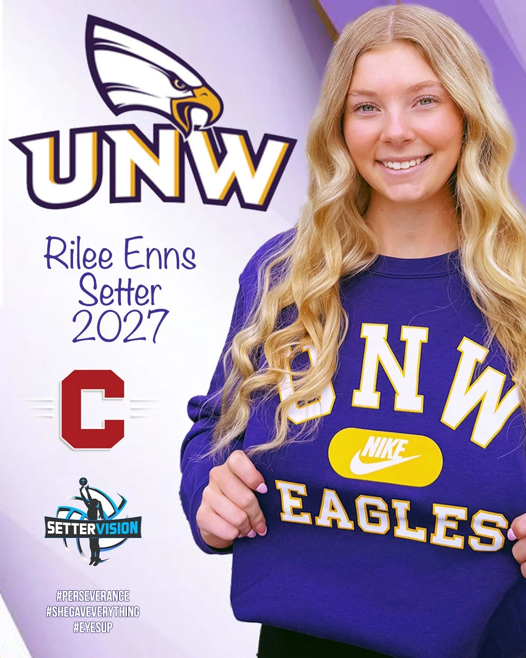 Rilee is the definition of quiet confidence. She leads without needing the spotlight, helps anchor our 17-1’s with steady decision making, and competes with an edge that never wavers. When the match gets tight, she gets sharper. What sets Rilee apart isn’t just her volleyball IQ or her competitiveness, it’s her heart. She is deeply Christ centered, and that foundation shows up in the way she leads, encourages, and carries herself on and off the court. Her faith fuels her work ethic and her commitment to serving her team first. UNW is getting a fierce competitor, a selfless leader, and a setter who makes everyone around her better. We couldn’t be more proud of you, Rilee. Your impact is only just beginning.